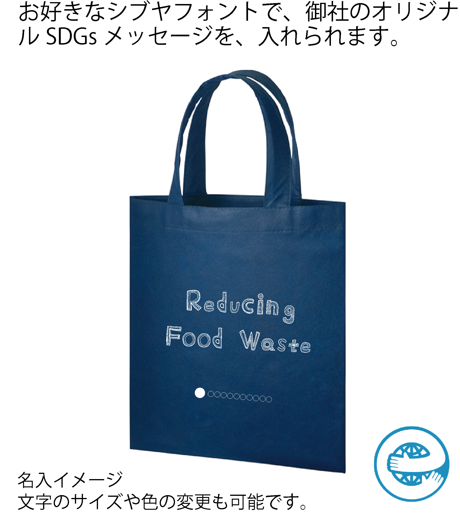 TR-1188-006 再生不織布A4フラットトート ディープブルー 名入1色 シブヤフォントでSDGsメッセージ+社名 1セット(200個) (詳細はお問い合わせください)